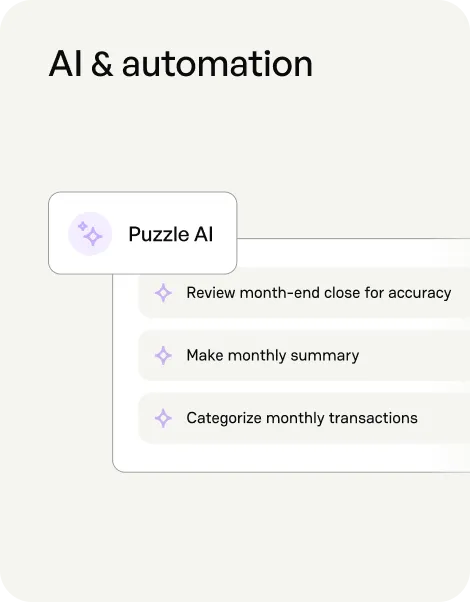While QuickBooks traps you in manual workflows, Puzzle delivers automated insights the moment transactions happen.